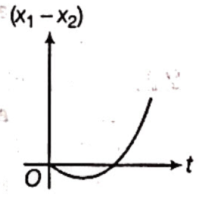 Q2. A body is at rest at $x = 0$. At $t = 0$, it starts moving in the positive $x$-direction with a constant acceleration. At the same instant, another body passes through $x = 0$ moving in the positive $x$-direction with a constant speed. The position of the first body is given by $x_{1}(t)$ after time $t$ and that of the second body by $x_{2}(t)$ after the same time interval. Plot the graph which correctly describes $(x_{2} – x_{1})$ as a function of time?