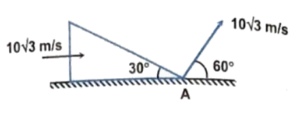 Q8. A particle is projected from ground at an angle $60^{\circ}$ with horizontal with a speed of $10\sqrt{3} \ m/s$ from point $A$ as shown. At the same time the sufficient long wedge is made to move with constant velocity of $10\sqrt{3}$ towards right as shown in figure. The time in second after which particle will hit the wedge will be. ($g = 10 \ m/s^2$)