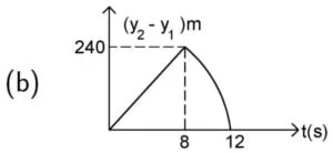 Q1. Two stones are thrown up simultaneously from the edge of a cliff $240 \ m$ high with initial speed of $10 \ m/s$ and $40 \ m/s$ respectively. Plot the graph representing the time variation of relative position of the second stone with respect to the first? (Assume stones do not rebound after hitting the ground & neglect air resistance, $g = 10 \ m/s^2$)