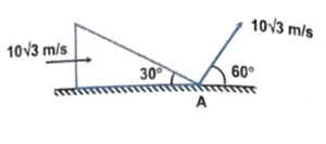 Q8. A particle is projected from ground at an angle $60^{\circ}$ with horizontal with a speed of $10\sqrt{3} \ m/s$ from point $A$ as shown. At the same time the sufficient long wedge is made to move with constant velocity of $10\sqrt{3}$ towards right as shown in figure. The time in second after which particle will hit the wedge will be. ($g = 10 \ m/s^2$)