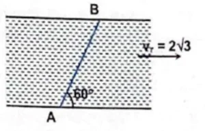 Q5. A river is flowing with the velocity of $2\sqrt{3} \ m/s$. A boat has to move from $A$ to $B$. Find the minimum velocity of boat in still water.
