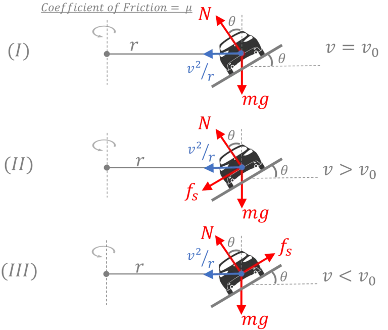 Now, let’s see how the scenario changes a bit when the car is on a banked road